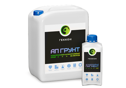 Геккон АП Грунт - Полиуретановое двухкомпонентное покрытие на основе комплекса модифицированных форполимеров отверждаемое влагой воздуха с высоким сухим остатком, большим содержанием железноокисных пигментов, специальных антикоррозионных добавок, и наполнителей. Состав обеспечивает эффективную антикоррозионную защиту в составе системы покрытия. Используется в качестве антикоррозионного грунта при эксплуатации в различных условиях , в том числе в условиях окружающей атмосферы.